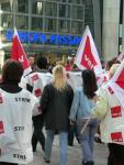 Seit dem 28. September streiken die Beschäftigten bei der Otto-Lagerwirtschaft, der HWS, in Hamburg und am Standort Haldensleben in Sachsen-Anhalt. Die Beschäftigten erhöhen damit den Druck auf die Arbeitgeber des Einzelhandels, um eine deutliche Reallohnsteigerung durchzusetzen und Verschlechterungen im Manteltarifvertrag, z. B bei Krankheits- und Urlaubsgeld abzuwehren. Gut 200 Streikende zogen am 1. Oktober durch die Hamburger City und informierten auf Flugblättern Passanten, Kunden und Beschäftigte über die Situation im Einzelhandel. Kurz entschlossen nahmen sie dabei eine „Abkürzung“ durch die Europa-Passage, um auch ihre dort arbeitenden Kolleginnen und Kollegen zu informieren. Die Streiks bei Otto gehen am 2.10. weiter.