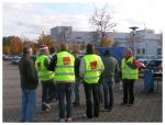 Am Mittwoch, den 10.10.2007 und den 9. Streiktag, fuhren 130 Kolleginnen und Kollegen der Früh- und Spätschicht aus Hamburg nach Haldensleben. Dort wurden sie von ca.500 Kolleginnen und Kollegen begeistert empfangen. Sie zogen gemeinsam durch die Stadt und zurück vor das Werkstor, wo sie eine Abschlusskundgebung abhielten.